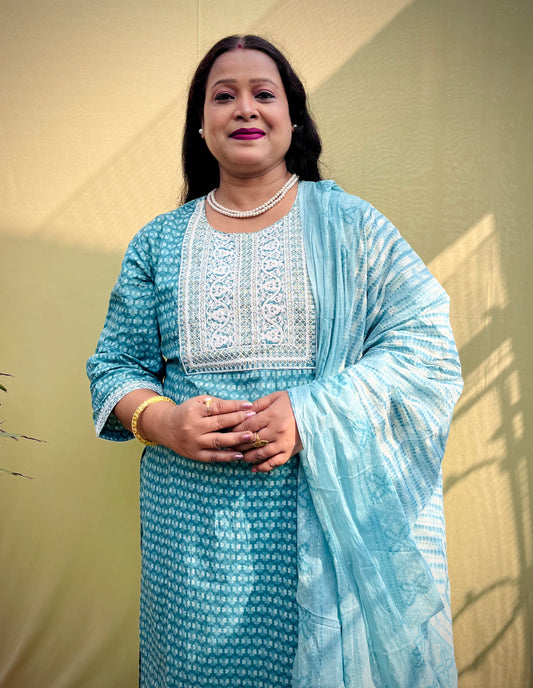 Saanvi Three Piece Anarkali Cut Kurti Set