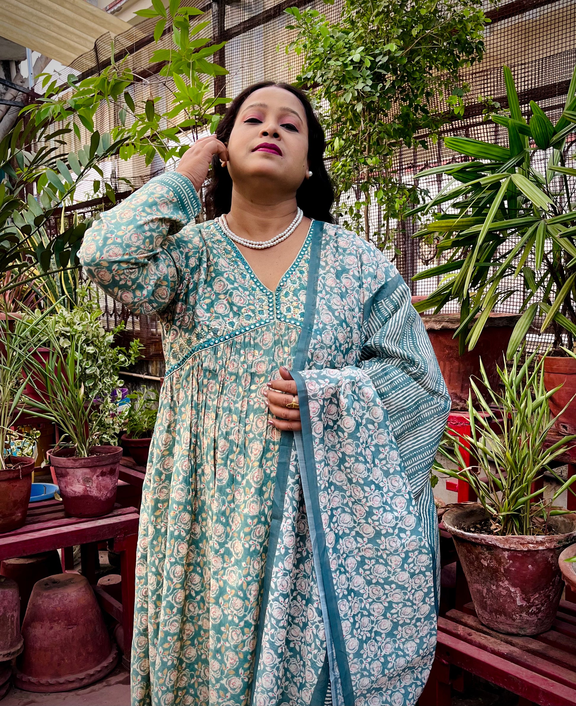 Elevate your style with our "Aaliya Cut" Three-Piece Kurti Set, crafted in soft modal muslin fabric. Featuring subtle embroidery, zari work, and faux mirror accents, this set combines sophistication and comfort. Paired with Afgani-style pants and a digital print silk dupatta, it creates a graceful and captivating look. Ideal for special occasions, this ensemble offers both elegance and ease.